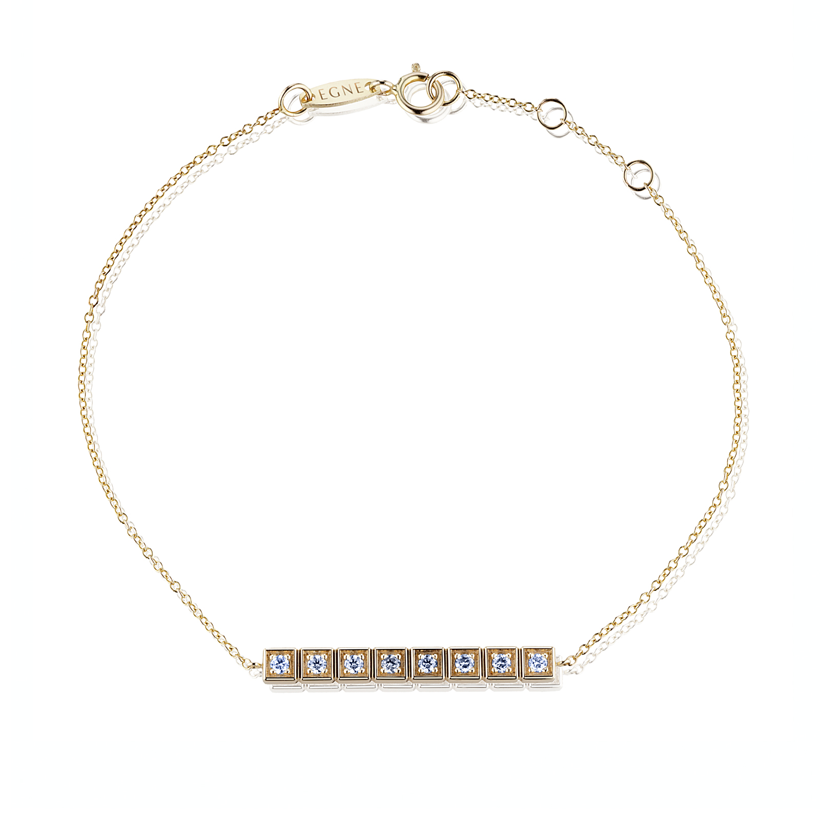 Elegantný a moderný náramok Radiance v sebe spája jemnosť a sofistikovanosť. V srdci tohto šperku sa nachádzajú dokonalé brilianty, ktoré sú osadené v precíznej hranatej línii, čo im dodáva unikátny geometrický vzhľad.