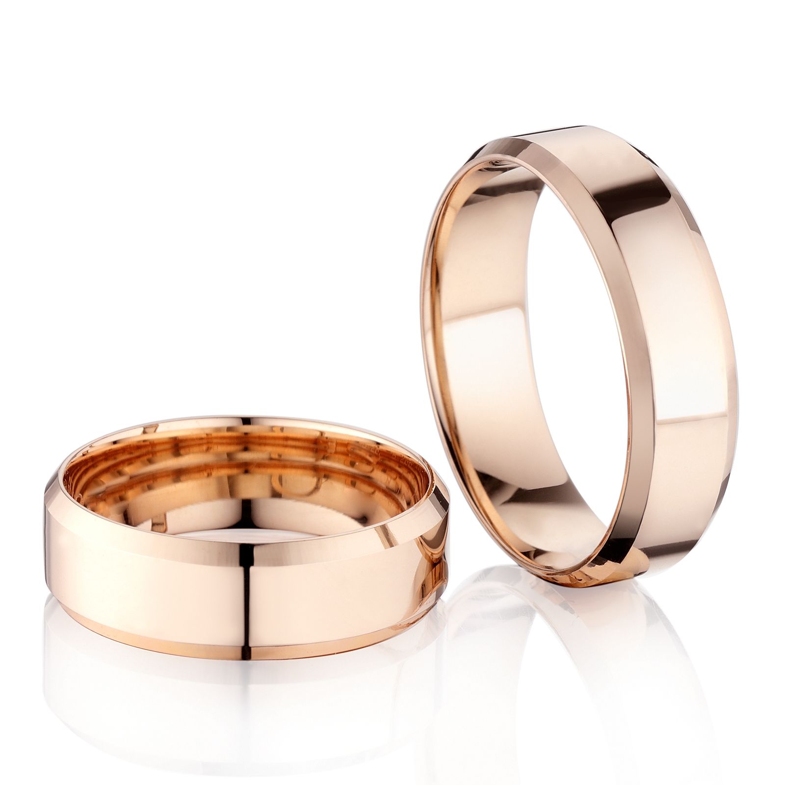 Moderné vyhotovenie a vysoký lesk. Presne to vystihujú krásne svadobné obrúčky s brúsenými hranami Rosie. Obrúčky sú široké 6 mm. Vnútorný profil je jemne vypuklý. Priemerná spoločná hmotnosť prstienkov je 11,2 g.