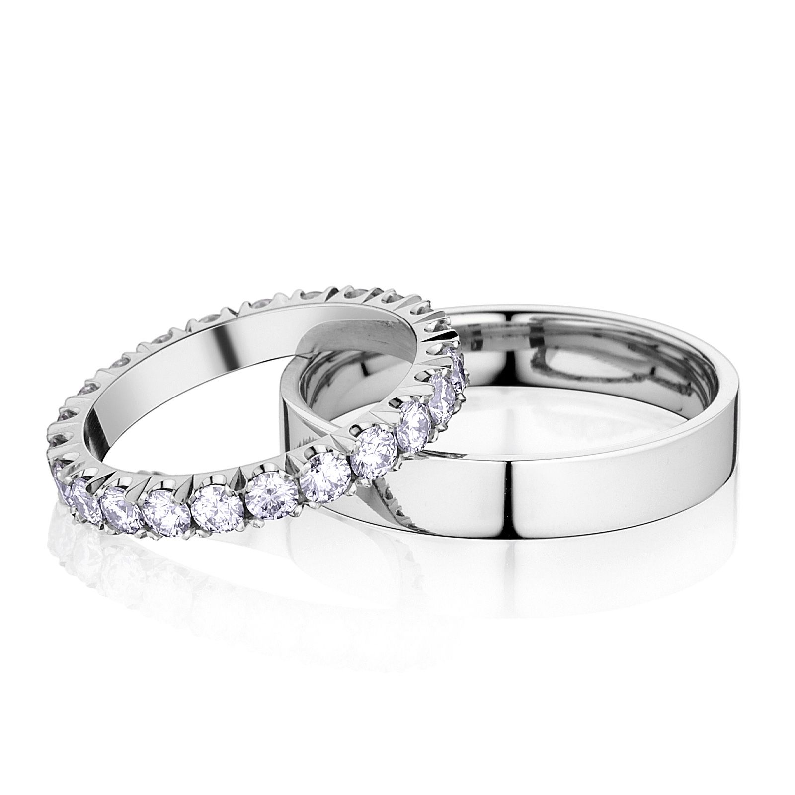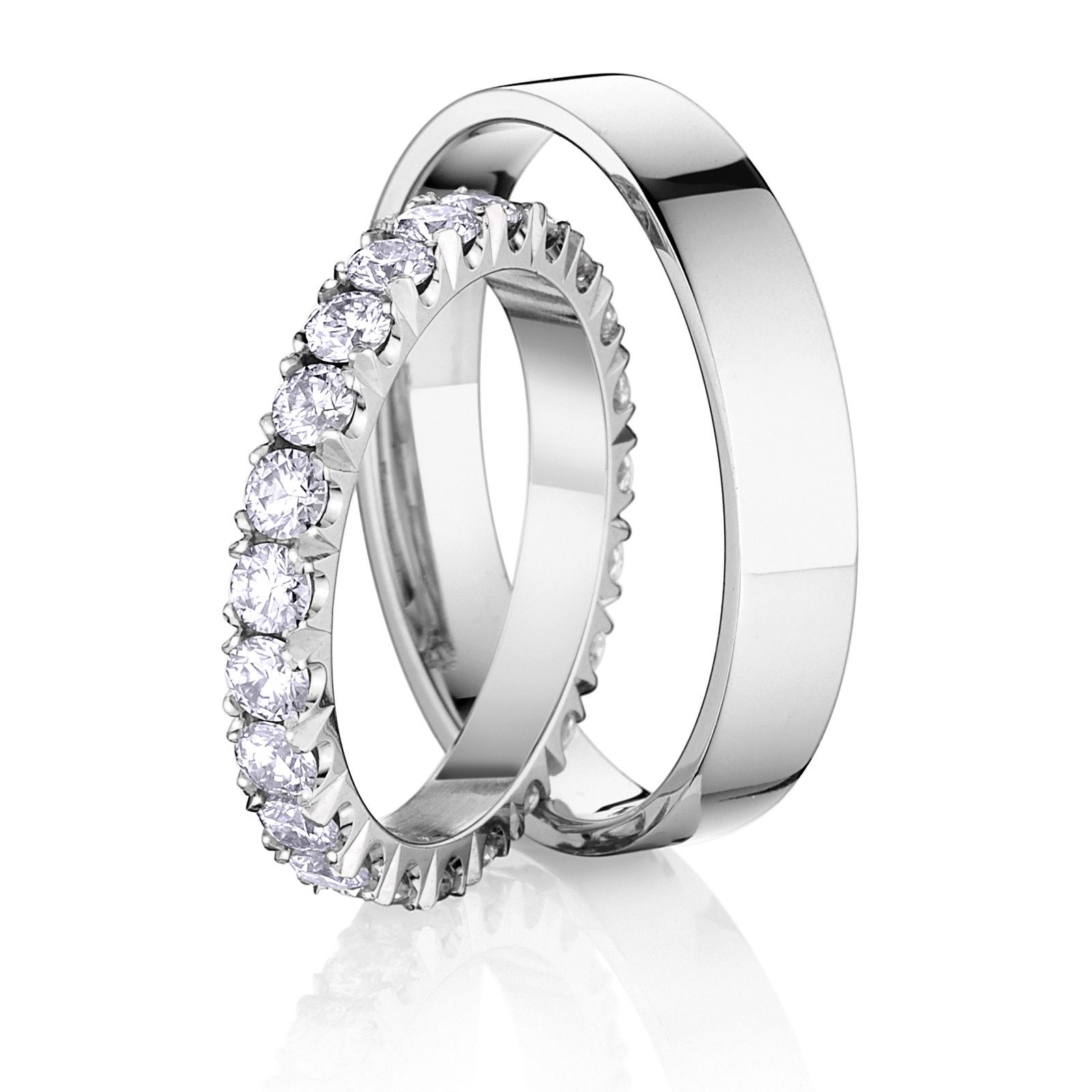 Krásne moderné svadobné obrúčky Willow svojím vyhotovením všetkých oslovia. Dámska obrúčka je široká 3 mm, pánska obrúčka je široká 4 mm . Vnútorný profil je jemne vypuklý. Priemerná spoločná hmotnosť prstienkov je 6,2 g. Detaily o osadených drahokamoch sa zobrazia po vybratí konkrétnej alternatívy.