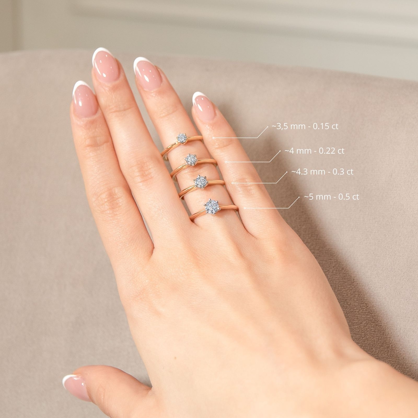 | Hlavný kameň | Diamant 0,22ct (~3,90mm x 3,90mm) Brilliant G/H VS1/VS2 EGNE, Diamant 0,25ct (~4,00mm x 4,00mm) Brilliant G/H VS1/VS2 EGNE, Diamant 0,30ct (~4,20mm x 4,20mm) Brilliant G/H VS1/VS2 EGNE, Diamant 0,40ct (~4,70mm x 4,70mm) Brilliant G/H VS1/VS2 EGNE, Diamant 0,50ct (~5,00mm x 5,00mm) Brilliant F VVS1/VVS2 GIA, Diamant 0,50ct (~5,00mm x 5,00mm) Brilliant G/H VS1/VS2 GIA, Diamant 0,50ct (~5,00mm x 5,00mm) Brilliant I SI1 GIA, Laboratórny diamant 0,25ct (~3,90mm x 3,90mm) Brilliant G/H VS1/VS2 EGNE, Laboratórny diamant 0,30ct (~4,20mm x 4,20mm) Brilliant G/H VS1/VS2 IGI, Laboratórny diamant 0,40ct (~4,70mm x 4,70mm) Brilliant G/H VS1/VS2 IGI, Laboratórny diamant 0,50ct (~5,00mm x 5,00mm) Brilliant G/H VS1/VS2 EGNE, Moissanit 0,30ct (~4,50mm x 4,50mm) Brilliant E/F VVS1/VVS2 EGNE, Moissanit 0,46ct (~5,00mm x 5,00mm) Brilliant E/F VVS1/VVS2 EGNE |