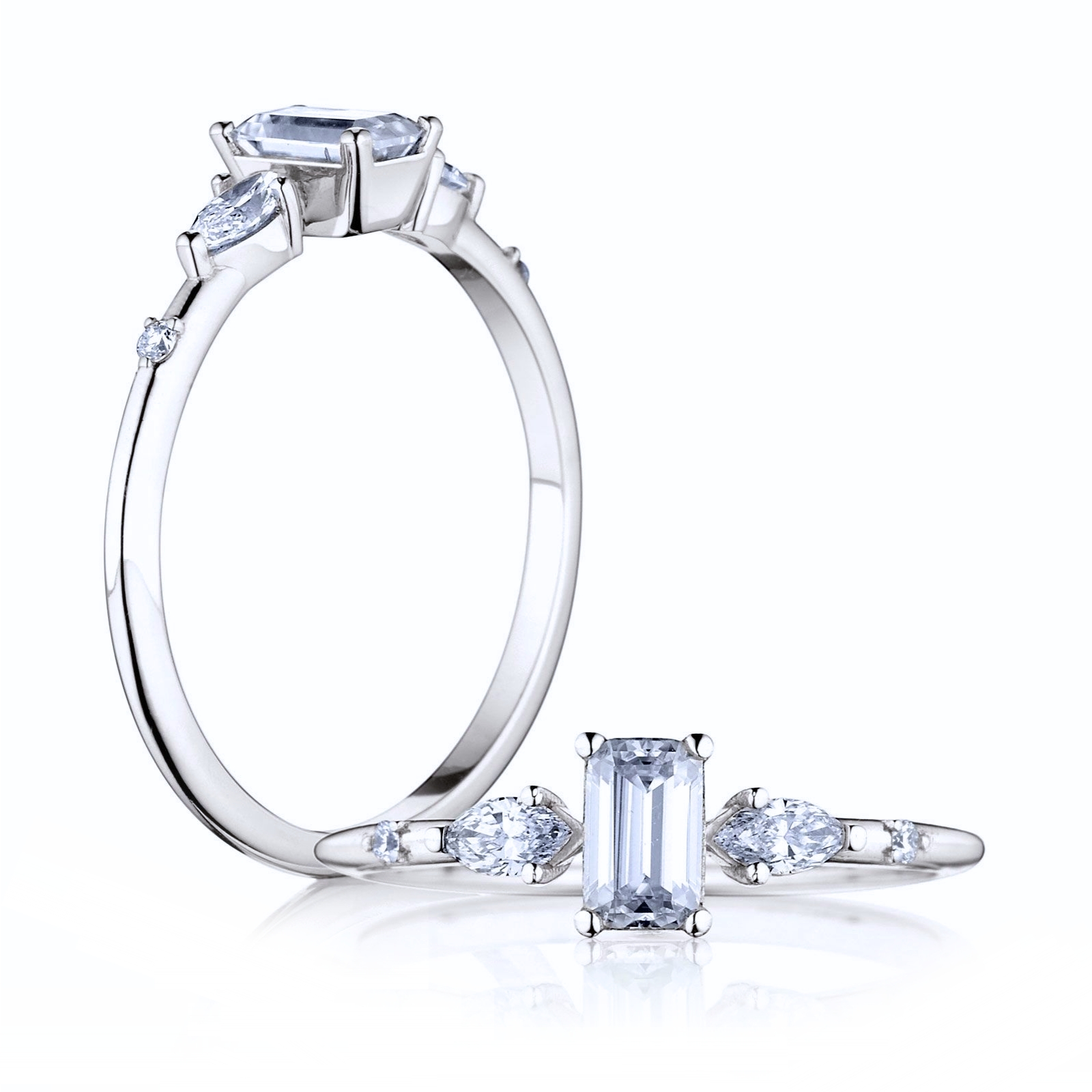 | Hlavný kameň | Diamant 0,30ct (~5,00mm x 3,00mm) Brilliant G/H VS1/VS2 EGNE, Laboratórny diamant 0,30ct (~5,00mm x 3,00mm) Emerald G/H VS1/VS2 IGI, Moissanit 0,30ct (~5,00mm x 3,00mm) Emerald E/F VVS1/VVS2 EGNE |